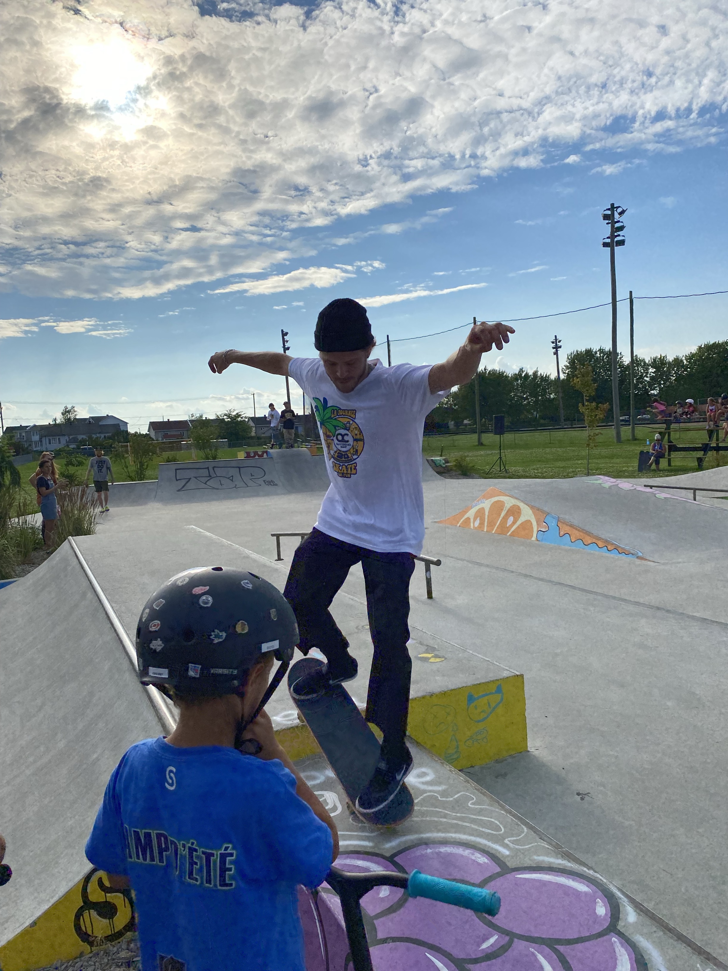 Ce qui rend ce projet encore plus spécial est la participation active de la population et des usagers du skatepark à la démarche. Lors d’un atelier de médiation dirigé par l’artiste le 1er juin dernier, près de 100 citoyens, dont de nombreux jeunes accompagnés de leurs parents, ont contribué en réalisant des oeuvres pour agrémenter le mobilier du skatepark. Cet atelier a permis aux participants de s’exprimer artistiquement et d’apporter leurs couleurs aux lieux. Sur place était présent un artiste du graffiti, Wolf.lartist, invité par Kassartiste pour ajouter quelques oeuvres de son cru.