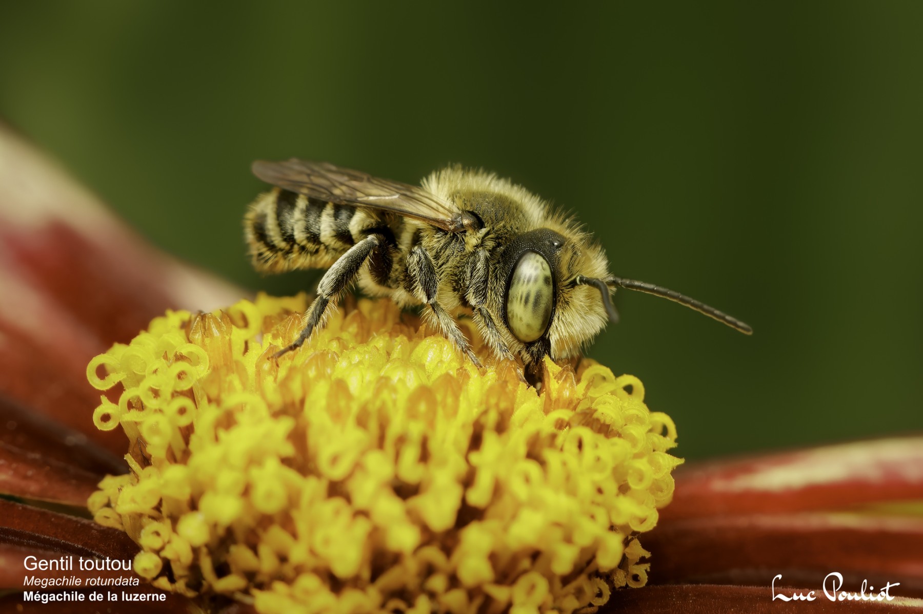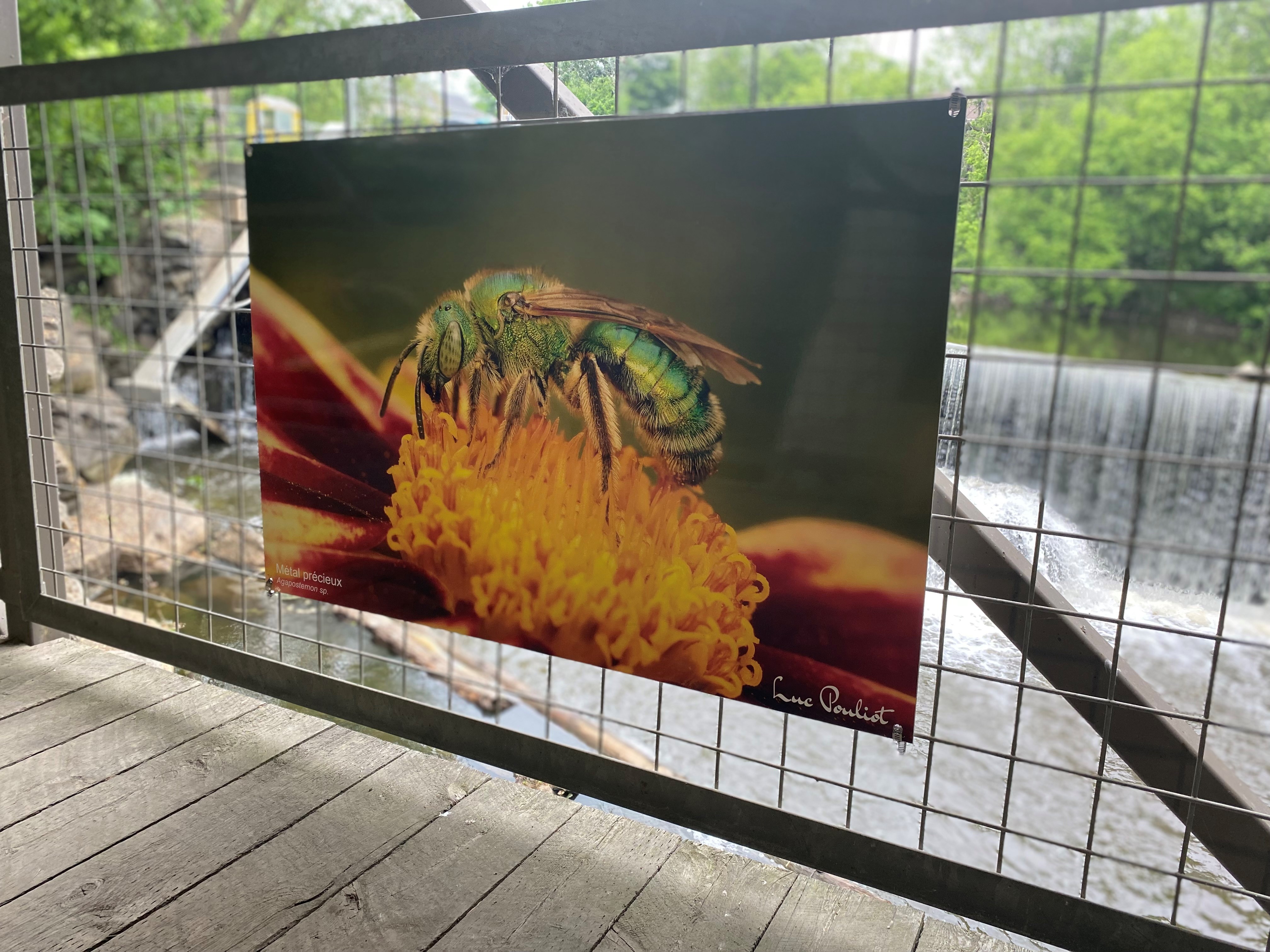 En septembre dernier, les artistes professionnels en arts visuels de la région ont été invités à déposer un dossier en vue d’une exposition en plein air et d’un atelier en médiation culturelle auprès du grand public. Les vingt photographies macro d’insectes de Luc Pouliot ont tout de suite retenu l’attention par la beauté fascinante de leurs sujets et de leur accord si pertinent avec la nature du lieu d’exposition. Avec la variété des essences d’arbres, les fleurs sauvages en bordure de la rivière l’Achigan et celles des plantes aménagées par la Ville en permaculture, le Parc André-Auger est effectivement un petit paradis pour les insectes pollinisateurs si importants pour notre écosystème.