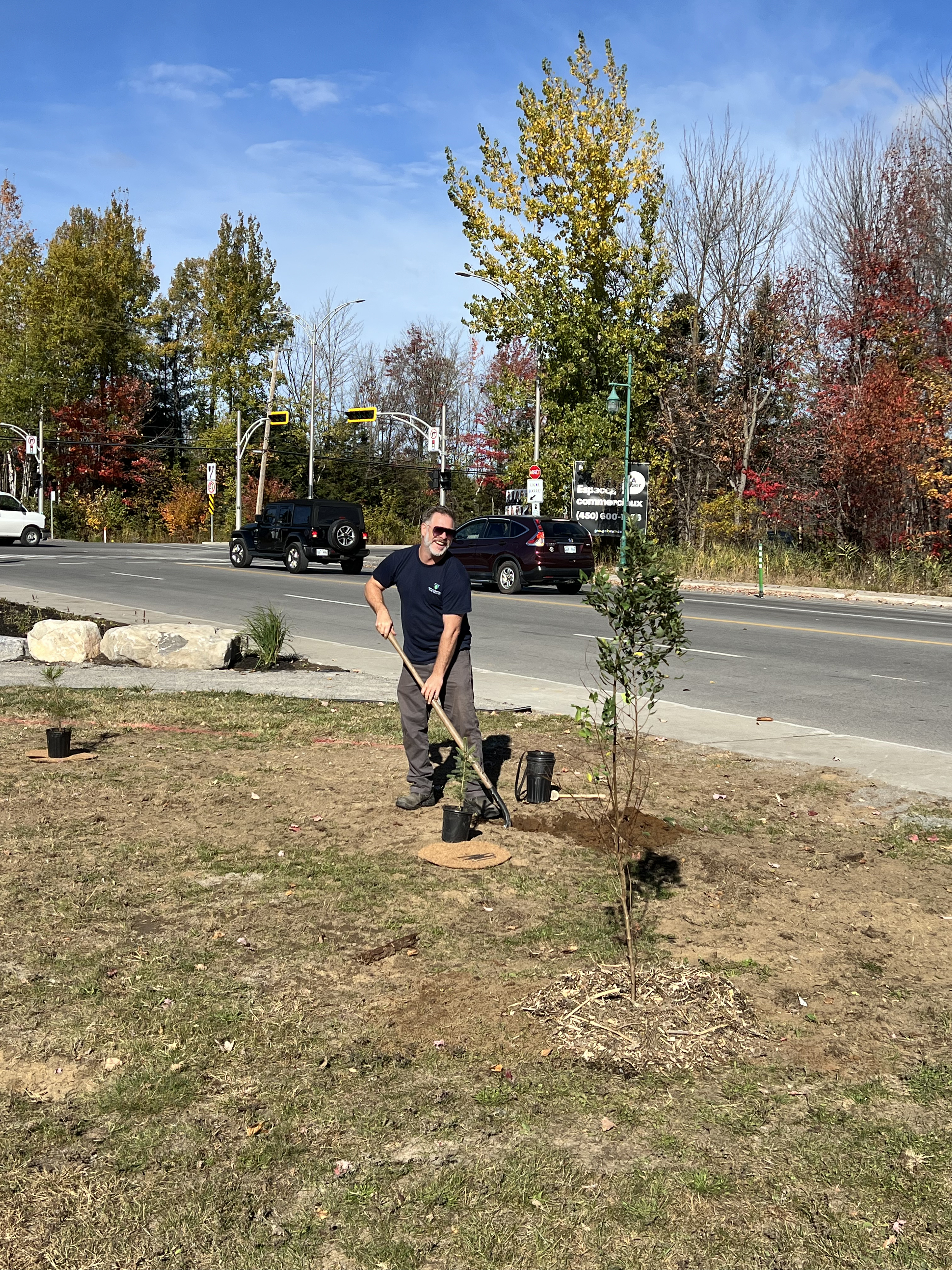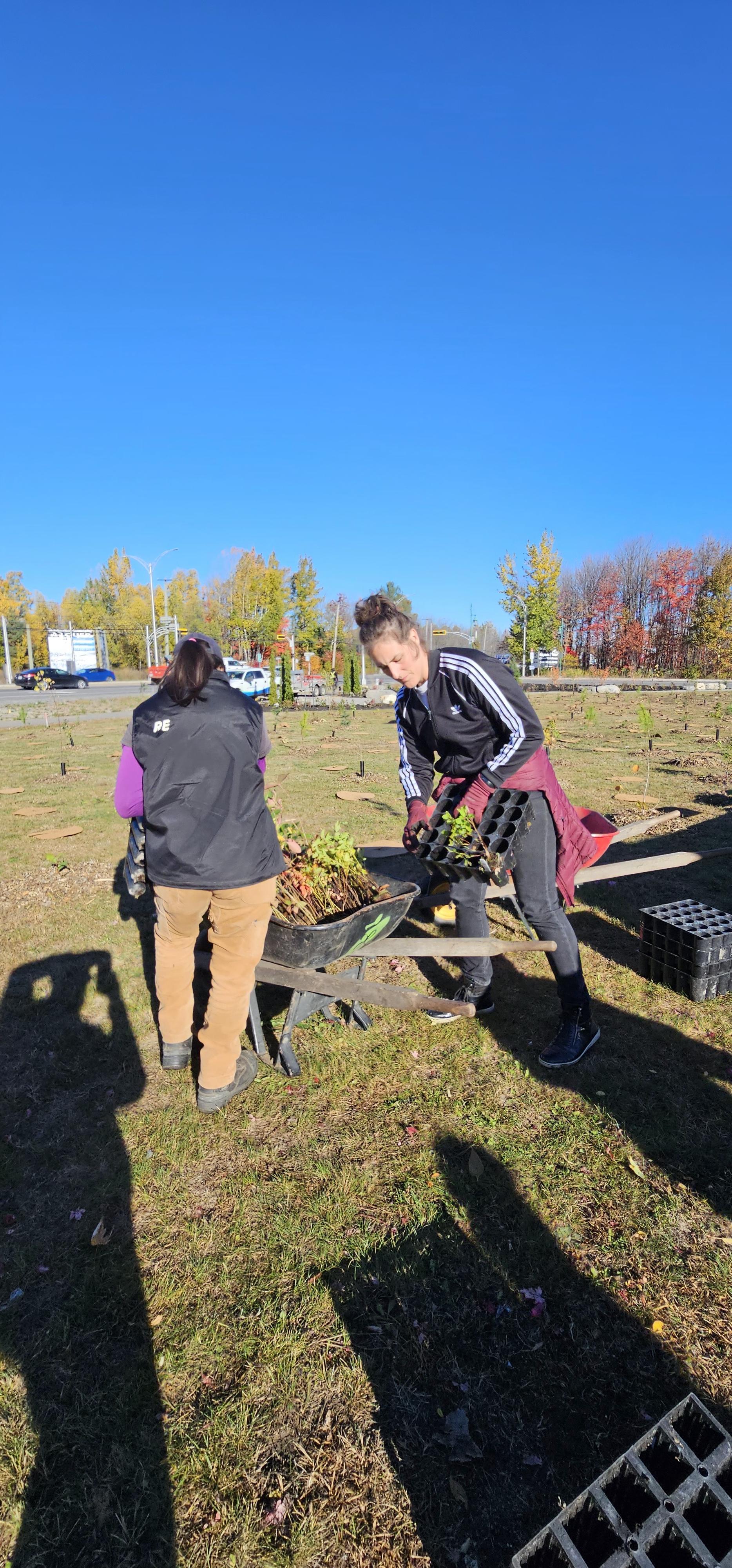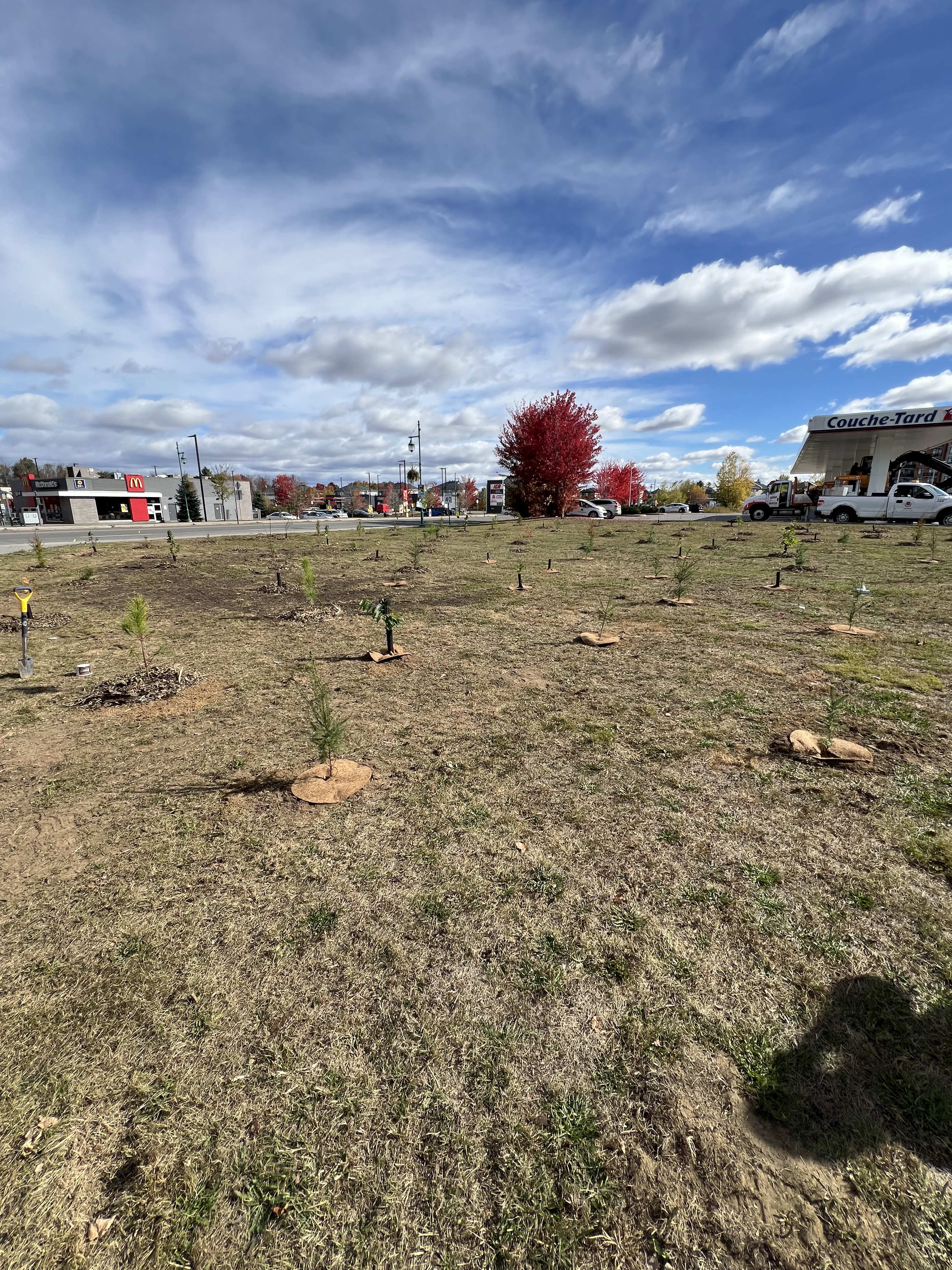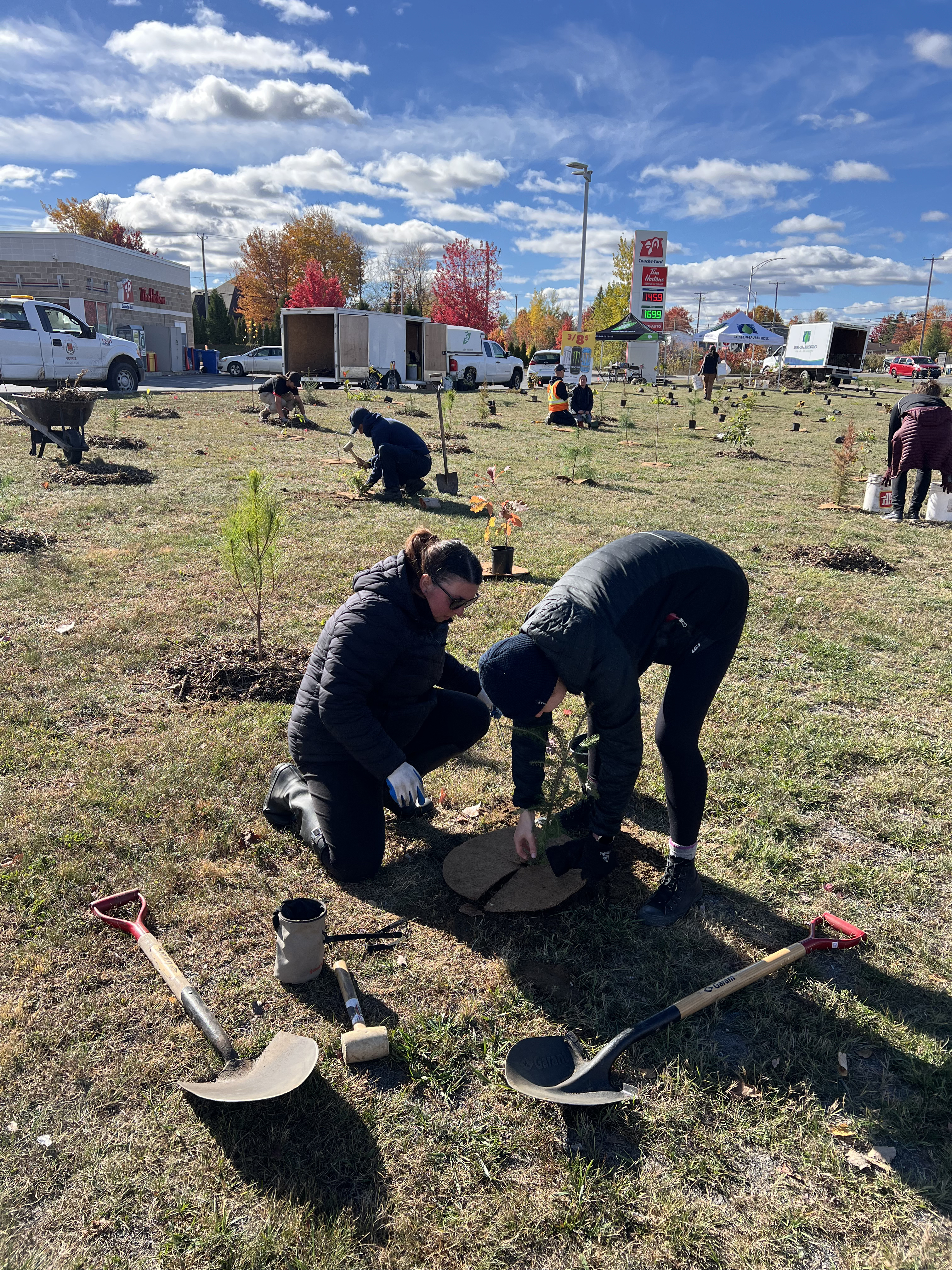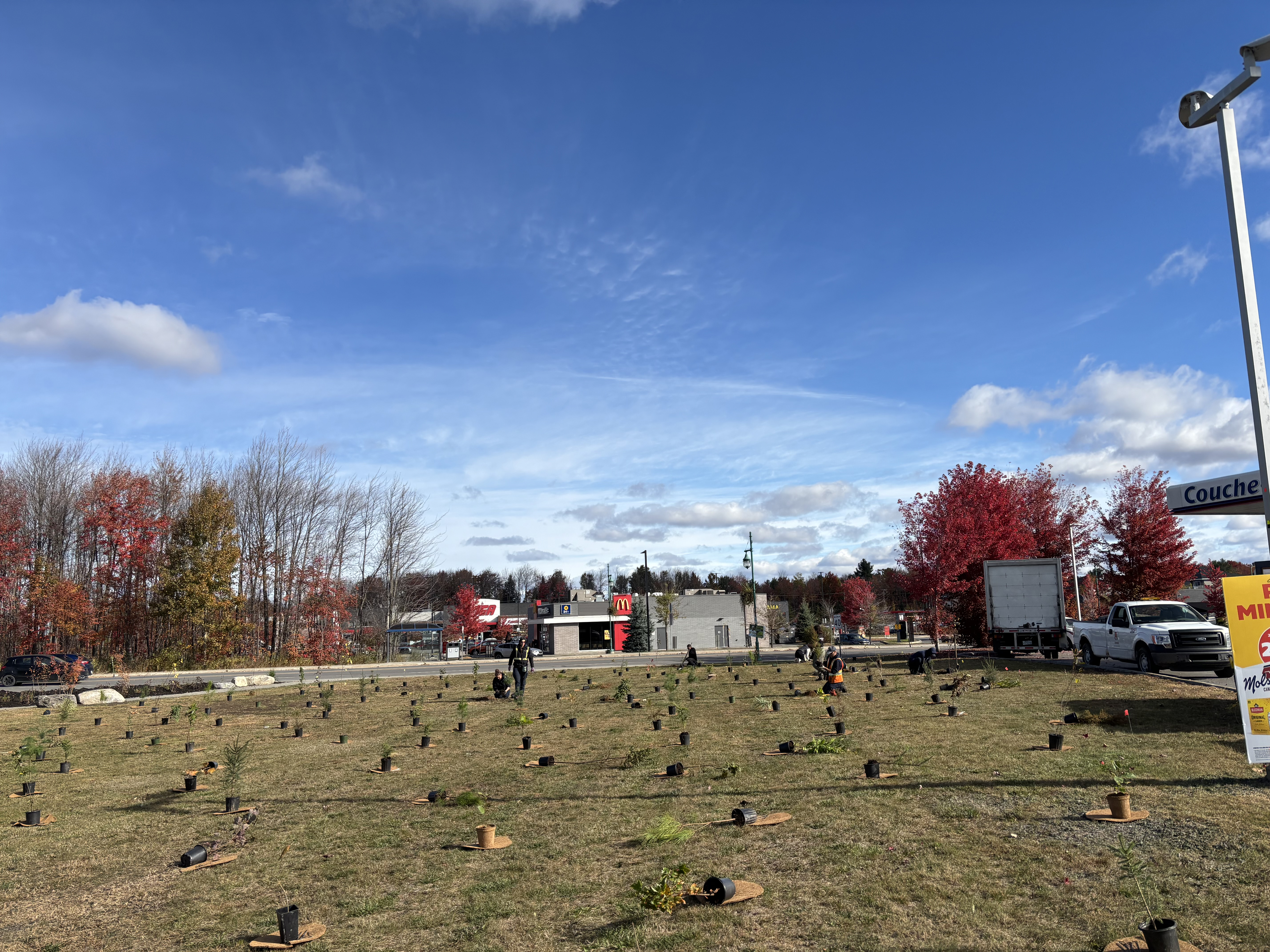 Les 15 et 16 octobre, sous un ciel ensoleillé, les équipes municipales, avec l’appui d’Arbre-Évolution ont planté 200 arbres et 400 arbustes d’espèces indigènes et comestibles à l’angle de l’avenue du Marché et de la rue Saint-Isidore.