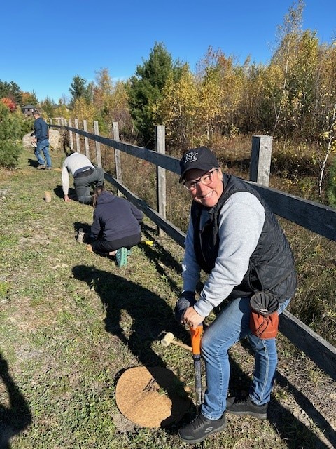 En parallèle de l’activité de plantation, un projet d’aménagement a été déployé le long de la piste cyclable : création d’une placette et mise en valeur par l’œuvre d’art publique Le Porteur de bon augure de Josiane Saucier. Conçu par les Services des parcs et espaces verts, de l’urbanisme durable et des projets spéciaux, puis réalisé par l’équipe de Parcs et espaces verts, cet espace convivial sera inauguré officiellement au printemps 2026.