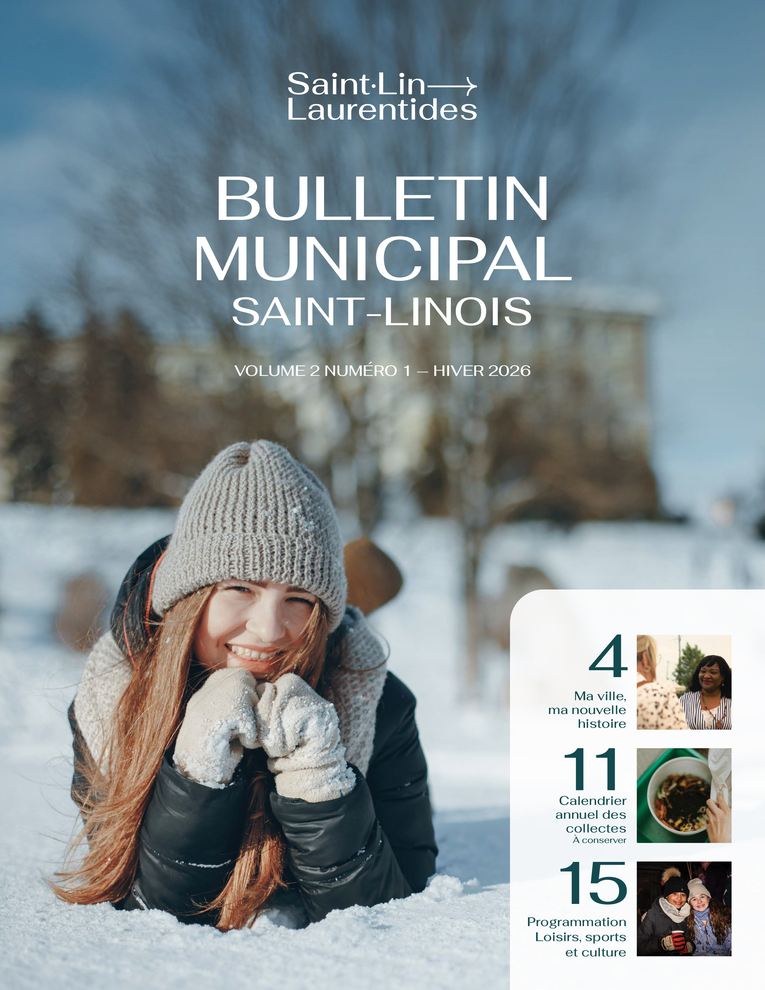 Chaque saison, ce bulletin sera votre complice incontournable pour rester à jour sur tout ce qui bouge à Saint-Lin-Laurentides. Que ce soit les projets municipaux, la programmation des loisirs, les événements à venir ou les initiatives locales, il vous offrira une vue d'ensemble complète. Bref, un véritable guide pour vivre pleinement chaque saison dans notre belle ville!